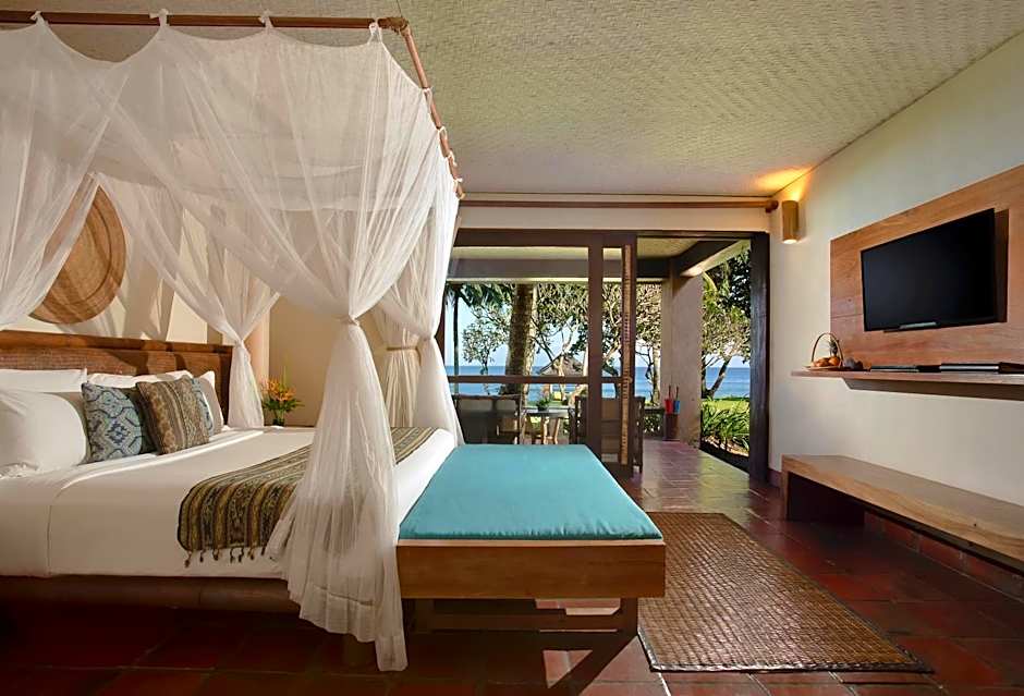 Located on the lower floor of a 2-story bungalow, this suite has partial views of the ocean and the garden. Located among the lush garden, guests can enjoy the sunset from the private terrace.